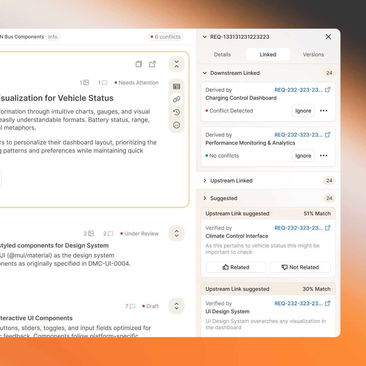 AI polishes draft text, generates titles, and surfaces relationships for clearer, more consistent requirements.
